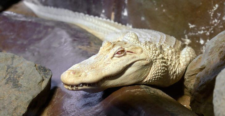 Autoritățile vamale au anunțat că au găsit un aligator albinos, foarte rar, în valiza unui american, pe aeroportul din München.